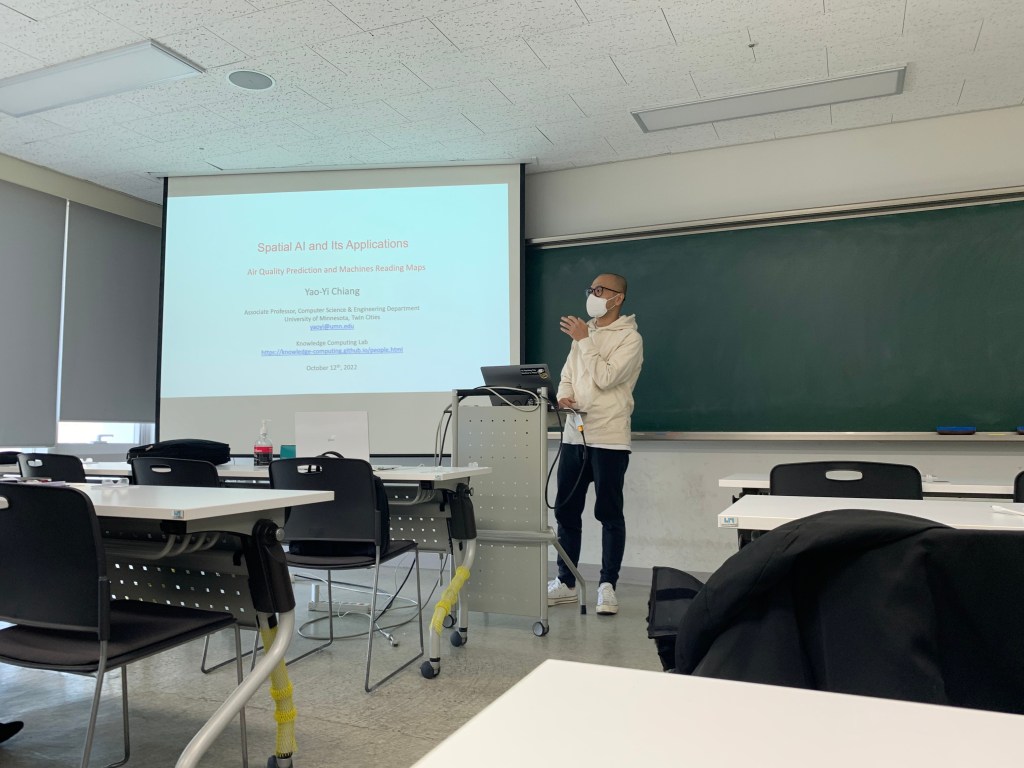 발표는 저희 연구원들 몇몇이 각자의 연구성과와 관심분야를 소개했고 이어서 Yao-Yi Chang 교수님께서 진행해오신 프로젝트와 진행중인 프로젝트 몇개를 발표하셨습니다.